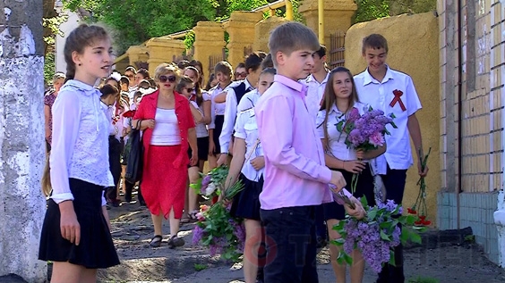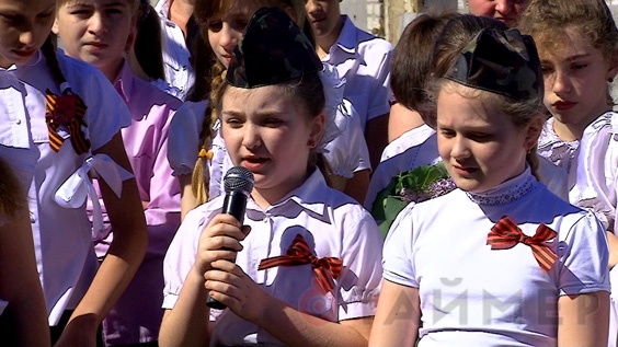В День Победы школьники возложили цветы к мемориалу, вручили букеты ветеранам и исполнили торжественные военные песни.