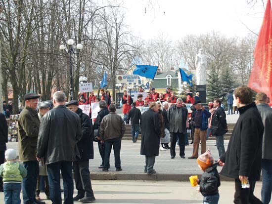 У теплу неділю в Каштановому сквері було багатолюдно. І головною причиною цього, по визнанню самих жителів Миколаєва, став мітинг, що проходив під гаслами: "НАТО - жандарм миру", "Не дамо перетворити Миколаївщину в Косово", "Скажи НАТО - ні".