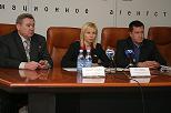 На вопросы журналистов отвечали председатель Днепропетровской областной организации Республиканской партии Украины Владимир Команов, и. о. секретаря Днепропетровской областной организации СДПУ(О) Инна Рудкевич и секретарь Днепропетровской областной организации СПУ Валентин Рыбалка.