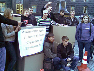 Сьогодні, близько 10 ранку, за ініціативи Всеукраїнської молодіжної громадської організації був проведений пікет Кабінету Міністрів України під назвою «Казочка про Чіполліно», де студенти збудували із паперових коробок студентський гуртожиток для Міністрів або як студенти міністрам гуртожиток.