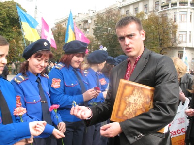 14 жовтня, Харківська обласна організація Української Народної Партії з нагоди Дня українського козацтва та Покрови Пресвятої Богородиці роздавала харків'янам синьо-жовті та малинові стрічки.
