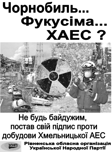 РІВНЕ. УНП збирає електронні підписи проти добудови Хмельницької АЕС