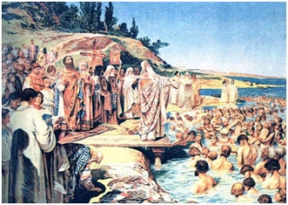 В эти дни мы воздаем хвалу князю Владимиру Красное Солнышко, который в 988 году, вначале в греческом городе Корсунь на полуострове Крым сам принял христианство, после чего для объединения страны, для укрепления Древнерусского государства начал процесс по христианизации Руси. Столицей Руси тогда был Киев. Именно в Киеве, в Днепре (а точнее, в его притоке, р.Почайна) князь Владимир и крестил русичей.