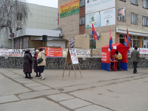 На акції лунали лозунги: "17 березня – ми обрали Союз!", "Трудящиеся Украины, России, Белоруссии – возродим Союз братских народов!", "Выживем вместе с Россией!".