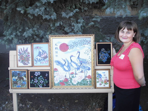 Поэтому ВОЖО «Дар жизни» приняла активное участие в праздновании, посвященном 339-летию города. Дети и женщины организации приняли участие в выставке декоративно-прикладного искусства. Работы Аллы Степановны Косман поражают своей фантазией, сказочными сюжетами. Более 100 видов материала использует Алла Степановна в своих работах. Это нитки, ленты, лоскутки, стекло, бисер, семена растений, вермишель, соленое тесто, рыбьи кости, пуговицы, дерево, ракушки и многое другое. Делает куклы и поделки из природного материала. Прекрасно вышивает различными способами. Ее мечта – вышить сорочку. Но, как всегда, не хватает самого главного - денег на ту самую сорочку. От «Дар жизни» приняла участие Алена Титаренко, дипломантка четырех областных конкурсов детского творчества (бисер) 2002, 2003, 2004, 2005 годов. Ее работы радуют глаз. Они несут радость жизни, много света и тепла. Посетители, проходя мимо Алениных работ, подолгу задерживались любуясь талантом молодой мастерицы. Скоро работы Алены увидит весь город на выставке в местном краеведческом музее. Дети показали свои работы из бисера и лент. Они очень радовались, так как для них это была первая большая публичная выставка. Даже продали несколько работ из лент.