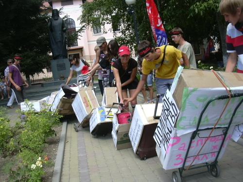 Для проведения акции молодёжная организация "Прорыв" подготовила наглядную экспозицию того, во что превратилась Украина за 20 лет независимости: