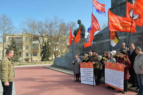 Перед собравшимися выступил председатель Союзного движения "17 МАРТА" Алексей Меркулов. Он поздравил собравшихся с торжеством исторической справедливости: по итогам Общекрымского референдума 16 марта 2014 года Севастополь и Крым воссоединились с Россией. Так же он выразил сожаление, что севастопольцы и крымчане не восприняли наших призывов "взять власть в руки трудового народа", а в очередной раз пошли по лабиринту за ставленниками олигархии. Алексей Меркулов подчеркнул, что "сегодня, благодаря американским и западным империалистам, а так же продажным украинским ставленникам на местах, мы стоим на пороге братоубийственной войны. Пока они грабят страну и вывозят на запад достояние, созданное советским народом, люди когда-то единой страны, готовы убивать друг друга. Мы должны сделать всё, чтобы пробудить наш народ, отстранить буржуйскую нечисть, денонсировать "Беловежский сговор" и возродить нашу великую советскую страну под нашим общим красным Знаменем Победы."