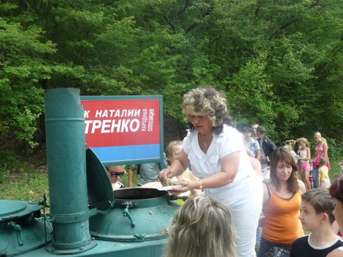 После трудных конкурсов участников и гостей соревнований "Казацкая удаль" ждала полевая кухня, организованная представителями Блока Наталии Витренко "Народная оппозиция".