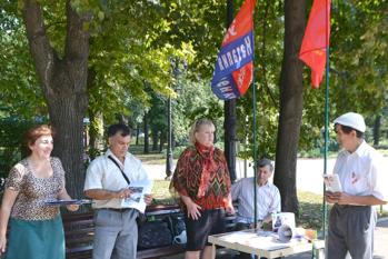 23 августа харьковские прогрессисты совместно с общественными организациями Харькова "Трудовая Харьковщина", "Международный союз советских офицеров", "Суть времени" и др. вышли с агитационными постами на центральные улицы Харькова под девизом: "В Союзе победили фашизм, сейчас нам предстоит сделать то же!". Жителям и гостям города были розданы поздравительные обращения в честь 70-летия освобождения Харькова от фашистских захватчиков с напоминанием исторических фактов освобождения родного города.