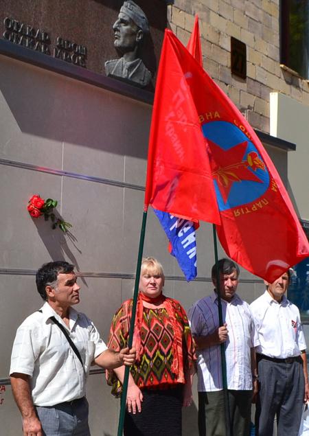 Затем харьковские прогрессисты возложили цветы у мемориальной доски одному из освободителей Харькова - командующему 1-й роты 1-го Чехословацкого батальона - Отакару Ярошу, дважды раненому в бою и подорвавшему себя гранатой под немецким танком. Отакару Ярошу посмертно присвоено звание Героя Советского Союза, его именем названа одна из улиц города Харькова.