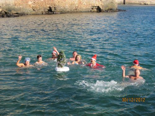После митинга все желающие совершили массовый заплыв в море. А возглавили последний в уходящем году заплыв два севастопольских клуба: "Буревестник" и "Морж СССР". Севастопольский "морж"-экстремал Виктор Пискунов, пропагандируя здоровый образ жизни, переплыл в 7-градусной воде Балаклавскую бухту туда и обратно.