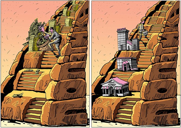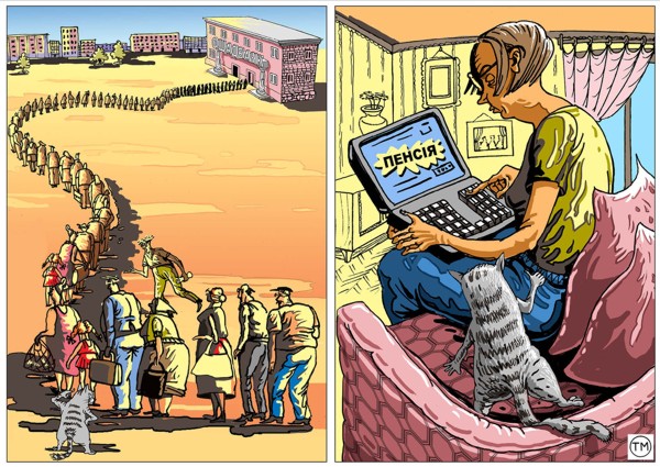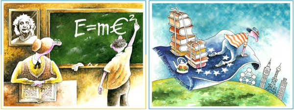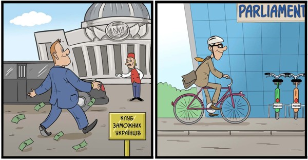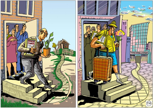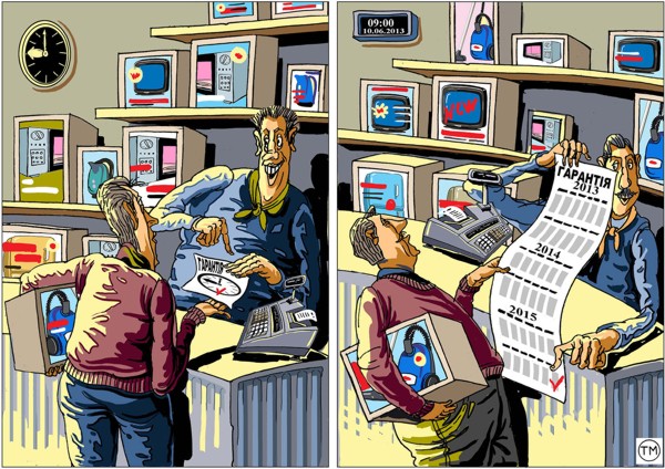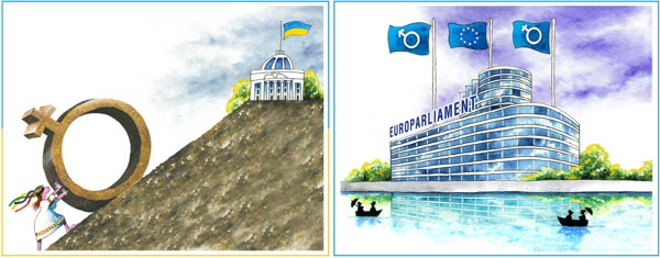 Институт мировой политики для агитации (а точнее, для зомбирования) граждан Украины в средине 2013 года проводил информационную кампанию для обеспечения европейской интеграции Украины. Институт страшно старался, заказал украинским художникам (М.Туровская, К.Казанчев, И.Бежук и А.Кустовский) серию оболванивающих карикатур (источник: ).