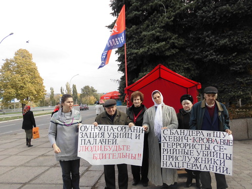 Работала агитпалатка, раздавали газеты, беседовали с жителями города, рассказывали о деятельности бандитской организации. Акция сопровождалась лозунгами: "Фашизм не пройдет!", "Защитим память жертв павших от рук ОУН-УПА", "Бандера и Шухевич - кровавые террористы, серийные убийцы, прислужники нацистской Германии", "Преступлениям ОУН-УПА нет срока давности. Пособникам нацистов в Книгу предателей народа Украины".