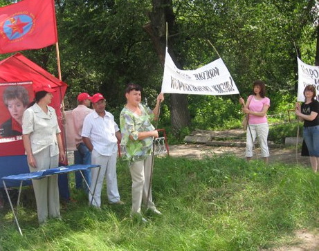 На пикет вышли жильцы общежития со своими требованиями к администрации, беременные, женщины с детьми, партийцы ПСПУ.
