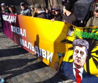 Вы уже, безусловно, поняли, что создается подходящая #картинкадлярусканалов. Теперь в вечернем эфире всякие там киселевы, соловьевы и примкнувший к ним Карасев будут пугать Трампа «возрождением национал-фашизма в Украине». Оставим в стороне Фрэнсиса Фукуяму. Просто возьмите и отставьте его в сторону с его же концом. Истории. Посмотрите на лозунги, с которыми эти, с позволения сказать, naционалисты идут по священной брусчатке улицы Грушевского. Почему священной? А ни хрена не ремонтируется, вся в ямах и каких-то подозрительных пятнах. Так вот, они идут с красочным плакатом «Чемодан, вокзал, Мальдивы» и орут «Ри-во-лю-ци-я!».
