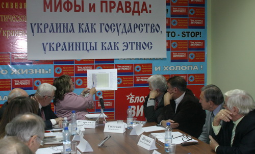 Впервые за 100 лет существования государства Украина собрались учёные и политики с целью размежевания мифов и правды об образовании Украины как государства и этнических корнях украинцев. Круглый стол состоялся 20 ноября 2015г. в г.Киеве по инициативе Прогрессивной социалистической партии Украины, поддержанной Координационным советом «Левой оппозиции. Выступили крупнейшие учёные-историки по вопросам Древнерусского государства, Войска Запорожского и революционных процессов начала ХХ века: акд. НАНУ П.П.Толочко, чл.-кор. НАНУ В.Ф.Солдатенко и к.ист.н. А.А.Олейников. С интересным исследованием выступила акад. Международной славянской академии наук, образования, искусств и культуры Н.М.Витренко. В работе Круглого стола приняли участие 4 доктора наук, 6 кандидатов наук, 7 народных депутатов Украины прежних созывов.