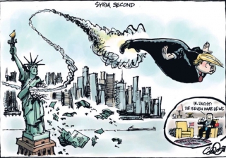 The Nation отмечает, что президентам, которые сталкивались, как Трамп, с внутриполитическими проблемами, редко удавалось добиться признания своих сограждан с помощью военных успехов за рубежом. Импульсивные ракетные удары по крошечному аэродрому «Шайрат» в провинции Хомс не будут иметь серьёзных военных последствий и не окажут заметного влияния на военные возможности сирийской армии, подчёркивает The Nation. В пользу этого предположения говорит то, что нанести ракетные удары предложили не генералы Пентагона, а глава внешнеполитического ведомства Рекс Тиллерсон.