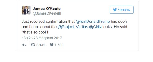 В своем микроблоге О'Киф сообщил, что опубликованная информация дошла до президента США Дональда Трампа.