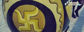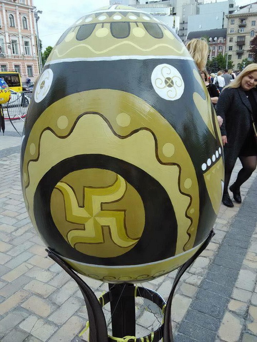 Инсталляция, которую тут же окрестили «арийской Пасхой», появилась на Софийской площади, в самом центре украинской столицы, напротив собора Святой Софии - святыни православия древней Руси.