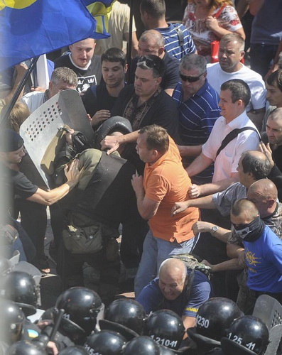 Около 90 раненых под Радой в том числе несколько человек в тяжелом состоянии - это результат брошенных нескольких взрывных устройств со стороны людей в футболках партии «Свободы», устроившими драку с Нацгвардией под ВР