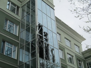 Обстрел произошёл по адресу: ул. Краснова, 6/1. Здание получило повреждения.