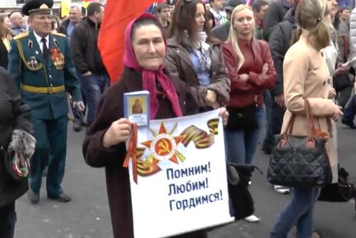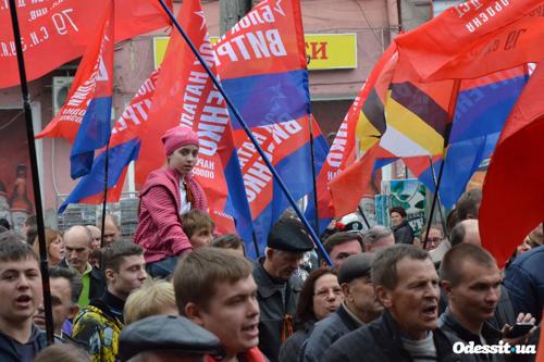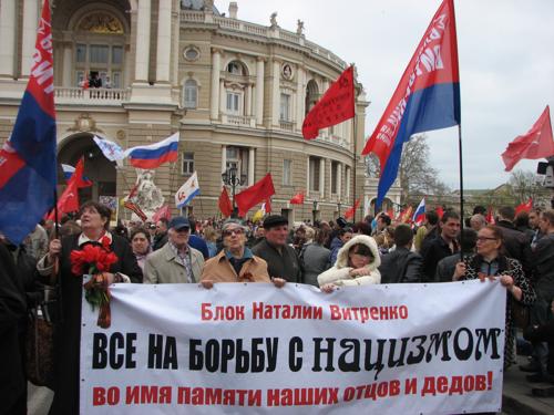 Активисты блока Наталии Витренко раздали одесситам тысячи поздравлений лидера блока и георгиевских ленточек. В ходе марша звучали лозунги "Россия!", "Референдум!", "Юго-Восток!", "Беркут!", "Донбасс!", "Луганск!", "Одесса-мама, маму не сдадим!", "Слава Красной Армии!".