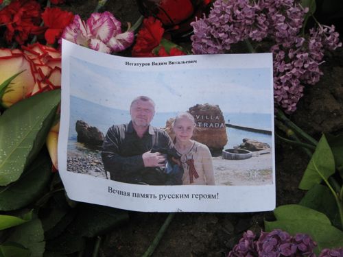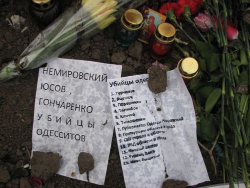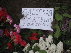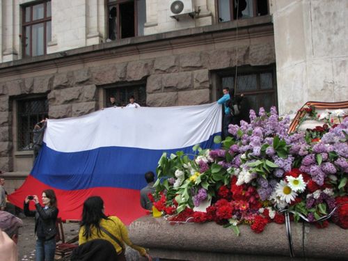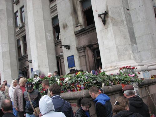 Весь день к Дому профсоюзов идут одесситы, чтобы почтить память погибших 2 мая земляков – сторонников федерализации. Буквально, несколько часов назад, на одной из стен здания появился огромный флаг России.