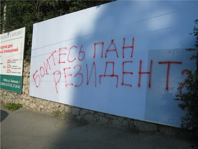 29 июля состоялась беспрецедентная атака оранжоидов на ПСПУ и Витренко. По указке прокурора Ялты Самойлика были заклеены билл-борды Наталии Витренко. В очередной раз власть крича на каждом углу в Европе о демократии, показала свою лживую , тоталитарную сущность. Нам безусловно понятно, почему это было сделано. Ближайший визит Патриарха Кирилла на священную землю Тавриды, посещение Севастополя –города РУССКОЙ славы, Херсонеса-КОЛЫБЕЛИ Православия, заставляют корчится в предсмертных судорогах власть "третьего тура выборов". И конечно пробандеровские холопы постарались убрать с пути следования РУССКОГО Патриарха любое упоминание о том, что в Крыму живут русские. Вместе с тем напротив заклеенного билборда Витренко мирно висит господин Янукович....ЕГО почему то не сняли и не заклеили, что естественно наталкивает на определенные выводы....Эти паны забыли одну простую истину "Бог не в силе, а в ПРАВДЕ!" Кстати прогрессивная общественность, очень быстро отреагировала на заклейку билбордов, и предложила свой вариант дизайна, который мы ясно видим на фото......