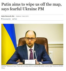 Новость вышла под заголовком: "Путин стремится стереть нас с карты, говорит испуганный премьер Украины".