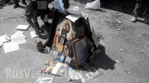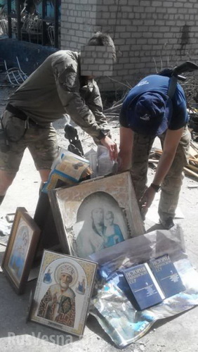 В сети появились фотографии, на которых батальон "Азов", дислоцированный в Широкино, сжигает иконы, выражая таким образом свое отношение к православию и празднуемому 28 июля Дню крещения Руси.