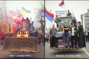 Поэтому даже если и допустить, что парламентская оппозиция действительно не имеет отношения к событиям возле Администрации президента, то все равно факт остается фактом: захват зданий КГГА и Дома профсоюзов организовали именно ее представители, что свидетельствует о развитии в целом ситуации на Украине по сценарию, отработанному в Югославии.