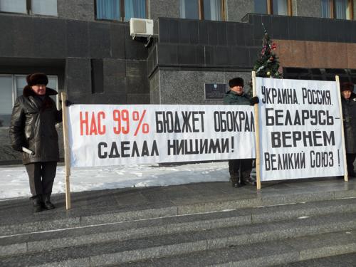 25 декабря в г.Ромны Сумской области у стен горисполкома, в день принятия бюджета города прогресситы провели акцию под лозунгом "Нет бюджету нищеты! Нет богатству олигархов и мафии!". Единогласно оранжевые (БЮТ, "Удар") и национал-фашисты ("Свобода") проголосовали за антинародный, антисоциальный бюджет города. Позор!