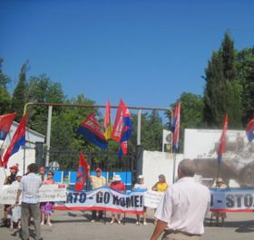 И как бы не врали купленные СМИ, что в этом году протесты против учений отсутствуют, прогрессивные социалисты и поддерживающие их Партия "Киевская Русь", общественные организации "Дети войны Севастополя", "Дар жизни" и Союзное движение "17 МАРТА" в городе-герое Севастополе, поддержали акции протеста одесских прогрессивных социалистов против учений кровавого агрессора НАТО в городе-герое Одессе. Севастопольцы провели пикет у штаба ВМСУ Украины. Все выступающие были едины во мнении, что эту проНАТОвскую антинародную власть нужно отстранять от управления.