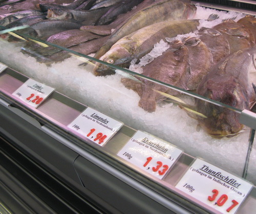 Рыба 3,07 евро 100 г (368,4 грн/1 кг)