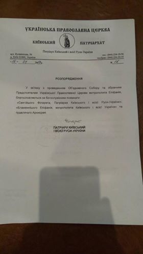 16 января Филарет распорядился: в церквях «Киевского патриархата», а ныне ПЦУ, в богослужениях следует поминать «святейшего Филарета, патриарха Киевского и всея Руси-Украины» и «блаженнейшего Епифания, митрополита Киевского и всея Украины».
