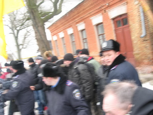 Сотрудники СБУ не пропустили активистов ПСПУ во главе с И.Донцом в здание, где проходила выставка.