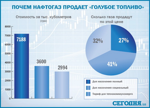 По прогнозам НАК "Нафтогаз", с апреля 2015 года по апрель 2016-го украинцы используют 21,3 миллиардов кубометров газа (на приготовления еды, подогрев воды и отопление). Как ранее заявлял Арсений Яценюк, Украина добывает около 20 миллиардов кубометров газа ежегодно, при этом около 7 миллиардов – добывают частные компании, и только 12,8 – государственные. Частные компании продают газ по рыночной цене, а государственная "Укргаздобыча" – по 1590 гривен за тысячу кубометров.
