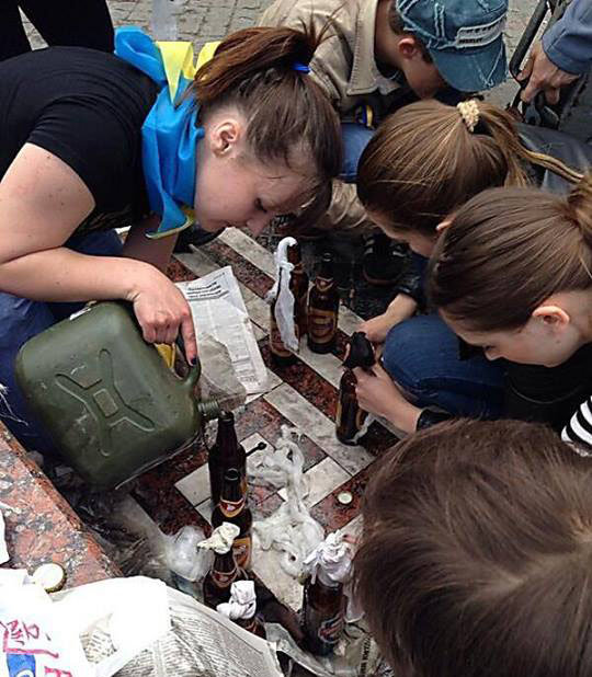 То есть, по версии г-на Пашинского, все вот эти "милые барышни", разливающее по емкостям "коктейль Молотова", на зарплате у российских спецслужб?