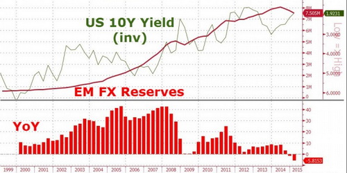 Реакция обязательно должна быть, так как сочетание резкого падения цен на сырьевые товары, девальвации юаня и возможности отмены повышения ставок в США создало огромное давление на валюты развивающихся стран по всему миру, что означает падение валютных резервов в этих странах и давление на облигации с плавающей процентной ставкой.