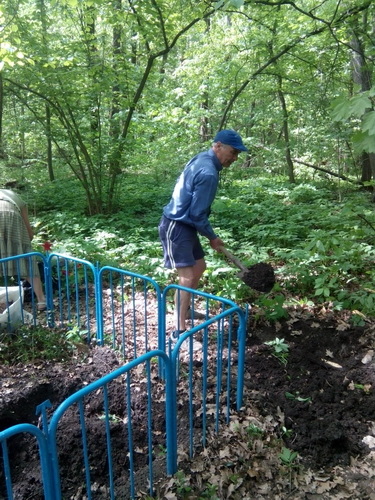 Однако не только этим отметила День Победы Харьковская организация ПСПУ. Она уже много лет шефствует над могилой убитых немцами в Лесопарке военнослужащих, которые оказались захваченными в военном госпитале. По слухам в этой могиле захоронены медсестры госпиталя. К великому сожалению не перевелись еще в нашей стране вандалы. Когда в очередной раз мы пришли к могилке, чтобы привести ее в порядок, внутри оградки оказалась яма. Что там искали эти нелюди, нам не известно.