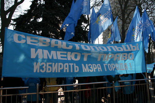 В результате не Закон, который бы регулировал поистине особый статус города-героя Севастополя, а указки оранжевой власти из Киева стали руководством к действию Главе городской госадминистрации - пропрезидентскому ставленнику С.Куницыну. Именно поэтому одним из лозунгов, привезенных севастопольцами, был лозунг "Севастополь – не вотчина Куницына!". Также пикетирующие держали плакаты "Севастопольцы имеют право избирать мэра города", "Закону о городе-герое Севастополе – быть!", "Да – городу-герою Севастополю".