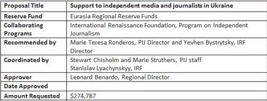 Также фонд устраивал партнерские отношения между украинскими и европейскими медиа. В их список попали Vox Ukraine, ГромадськеТБ, Наши Гроши, Европейская правда, крымский телеканал ATR, Зеркало Недели, Украинская правда, КиевПост.