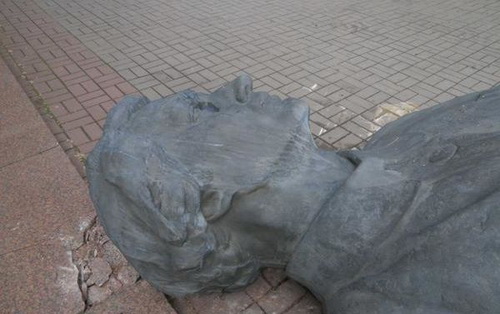 Повалені монументи пролежали кілька годин, поки комунальники не підігнали транспорт, щоб забрати статуї. Постаменти залишились на своїх місцях.