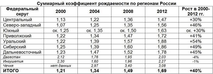 2. По этой причине успех 2013 года обусловлен многолетним повышением рождаемости именно в "русских" регионах - ведь русские составляют около 80% населения России.