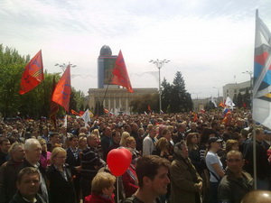 Народ всей площадью пел патриотические песни о войне и не только. Прямо с площади донецкий батальон "Восток" отправился на помощь мирным жителям и сторонникам федерализации в Мариуполь. После этого дончане организованной колонной прошли по городу в парк Ленинского комсомола к памятнику Воинам-освободителям.
