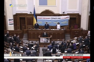 После этого все присутствующие в зале депутаты Верховной Рады почтили память Шухевича минутой молчания, встав с мест.