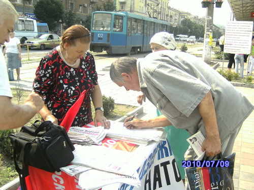 Жители Днепродзержинска, в целом, позитивно отнеслись к антиНАТовской акции, организованной местной организацией ПСПУ 9 июля.