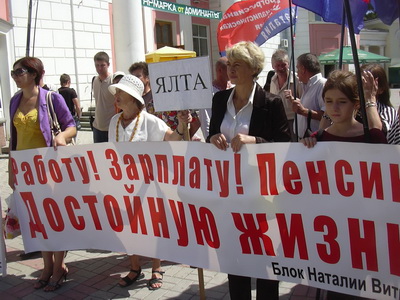 Поэтому ведущий митинга, лидер Крымской организации ПСПУ Юрий Курточкин, после выступлений ветеранов партий, предоставил слово крымской
