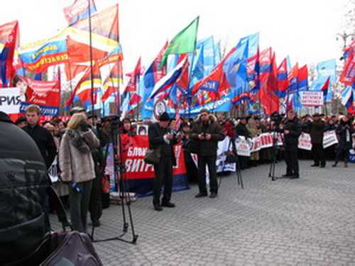 Угроза Черноморскому флоту, истеричные выпады в сторону России и самые низкие социальные показатели среди регионов Украины объединили в этот день жителей полуострова различных политических сил и общественных объединений вокруг блока Наталии Витренко, выступившем инициатором и организатором Всеукраинской акции.