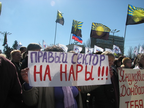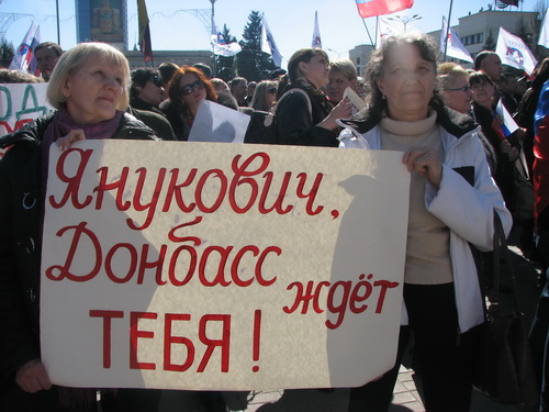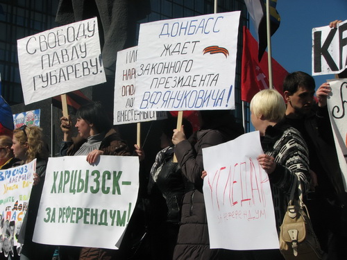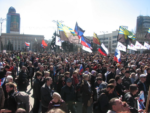 В Донбассе продолжаются протестные митинги. Митинги проходят по всем городам области, но самый многочисленный собрался 22 и 23 марта 2014 года на площади Ленина в Донецке.